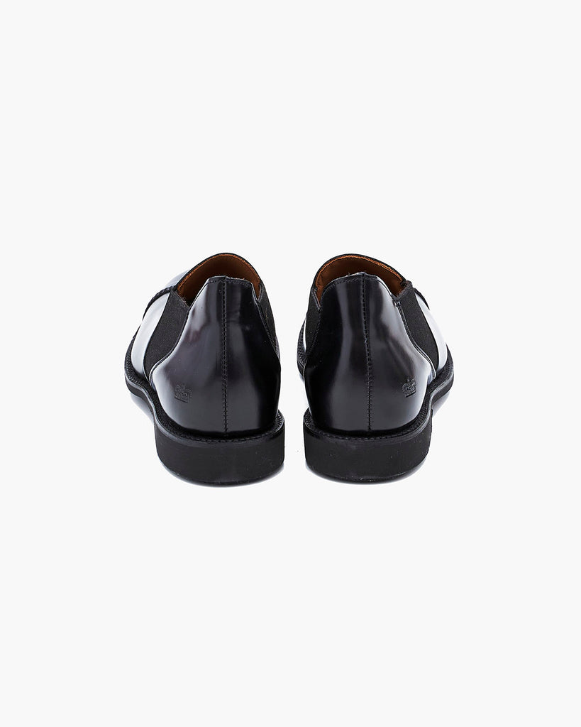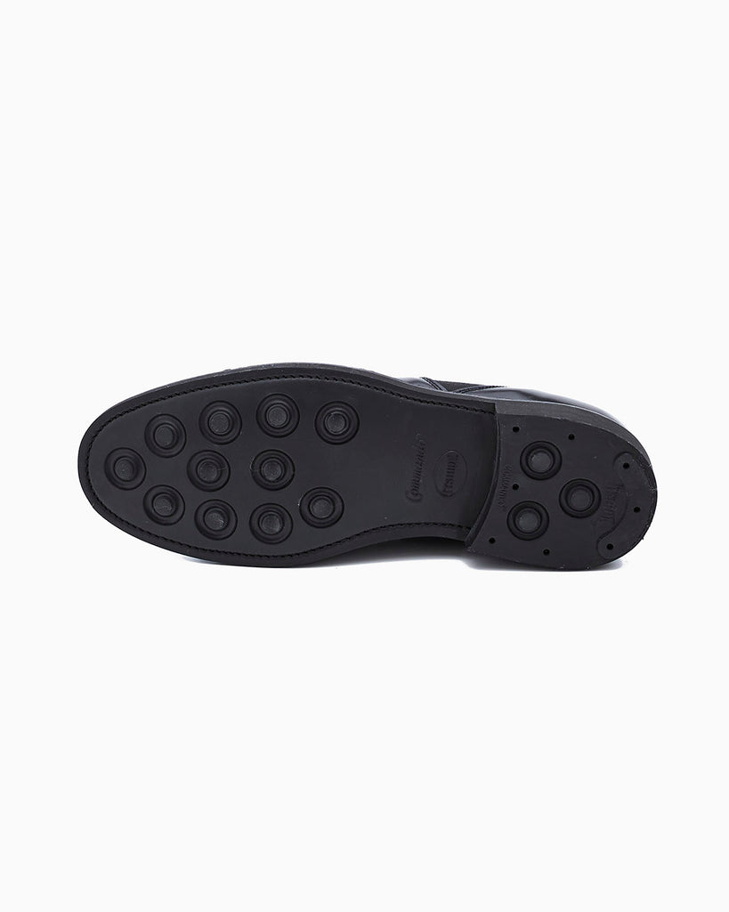 アッパーはポリッシュドレザー仕様。光沢感をがあり傷や汚れが付きにくく、比較的雨にも強いのが特徴です。ブラッシングの後、少量の水を含ませた柔らかい布で磨いて頂くと光沢感が保てます。簡単にお手入れができるため、革靴を初めて履く方へもおすすめです。