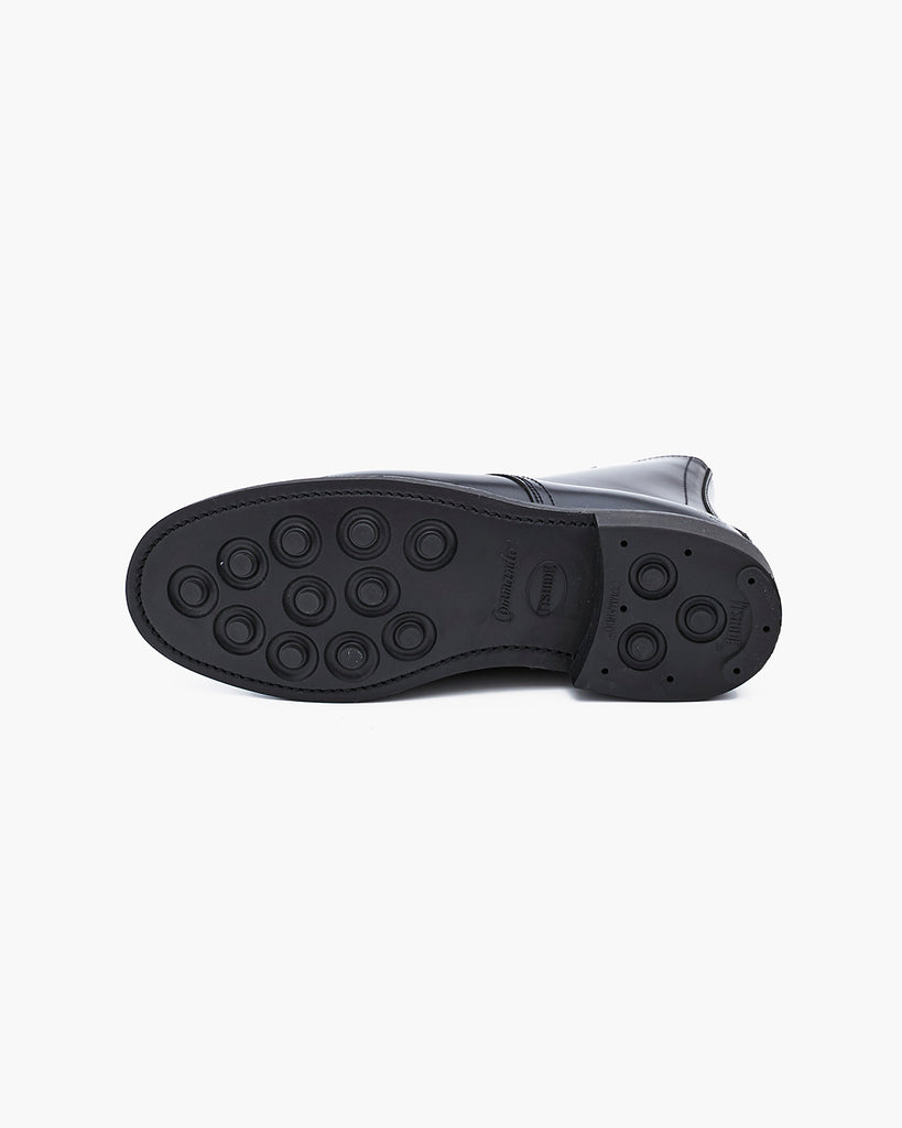 アッパーはポリッシュドレザー仕様。光沢感をがあり傷や汚れが付きにくく、比較的雨にも強いのが特徴です。ブラッシングの後、少量の水を含ませた柔らかい布で磨いて頂くと光沢感が保てます。簡単にお手入れができるため、革靴を初めて履く方へもおすすめです。