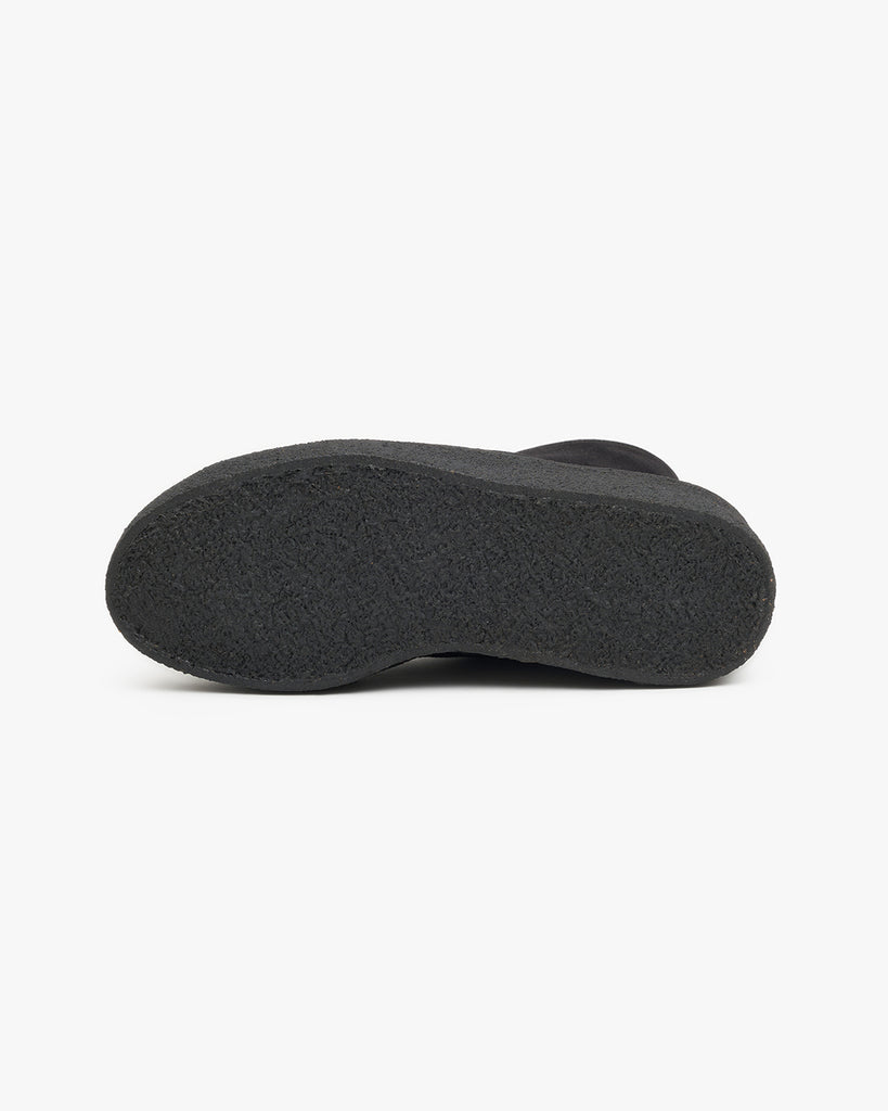 インナーにリアルシープスキンを採用したスウェードブーツ。バックにあるファスナーで簡単に着脱が可能です。天然素材を用いたブーツながら寒冷地で暖かく履けることはもちろん、ぽってりとしたフォルムが足元にボリュームを持たせてくれます。
