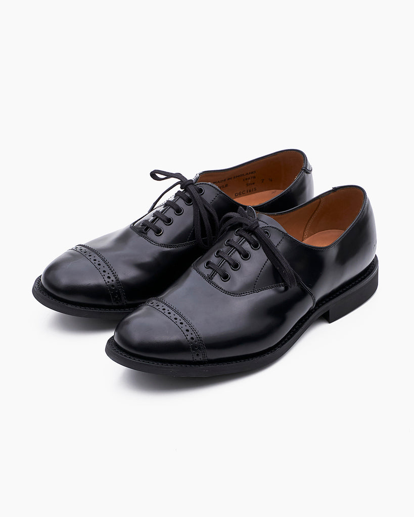 MILITARY COLLECTIONでは珍しい内羽根仕様。スッキリとした甲部分とキャップ部分にはパーフォレーションが施され、綺麗で華やかな印象に。ヒール部分には英国ならではのクラウンマークを表現する事が許されています。