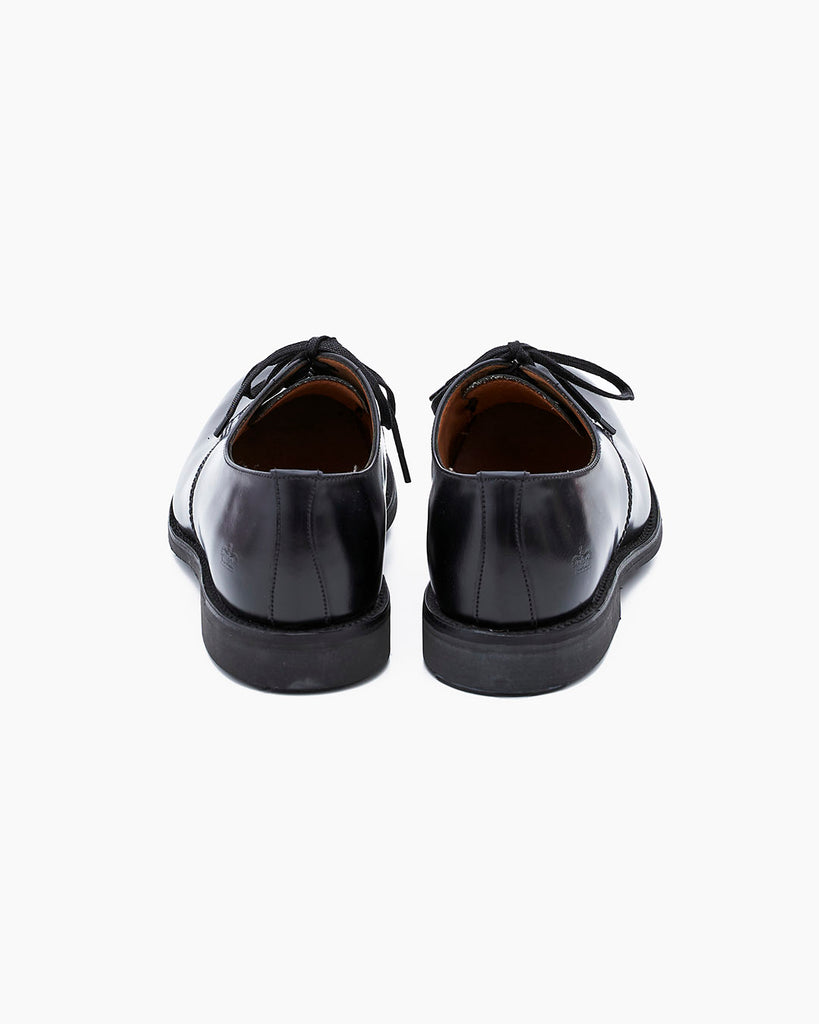 Plain toe is simple yet distictive triple stich line called Puritan stich is designed on the quarter.it has the British crown symbole on the heel which is originaly made by Sanders.