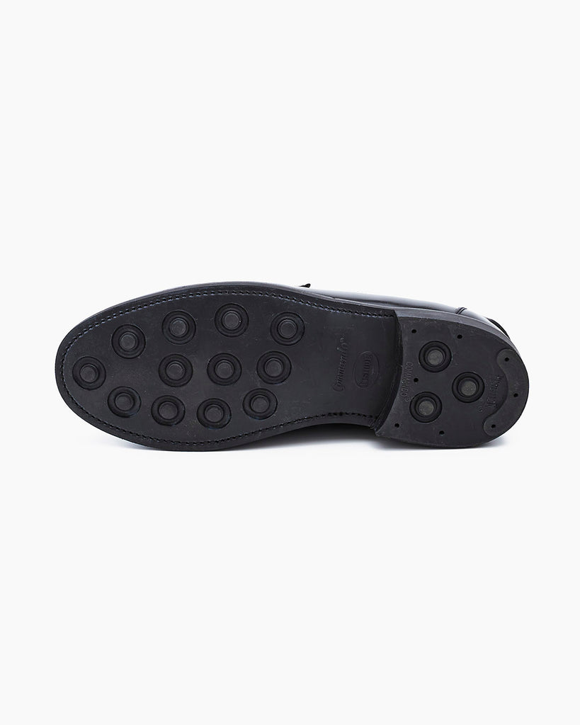アッパーはポリッシュドレザー仕様。光沢感をがあり傷や汚れが付きにくく、比較的雨にも強いのが特徴です。ブラッシングの後、少量の水を含ませた柔らかい布で磨いて頂くと光沢感が保てます。簡単にお手入れができるため、革靴を初めて履く方へもおすすめです。