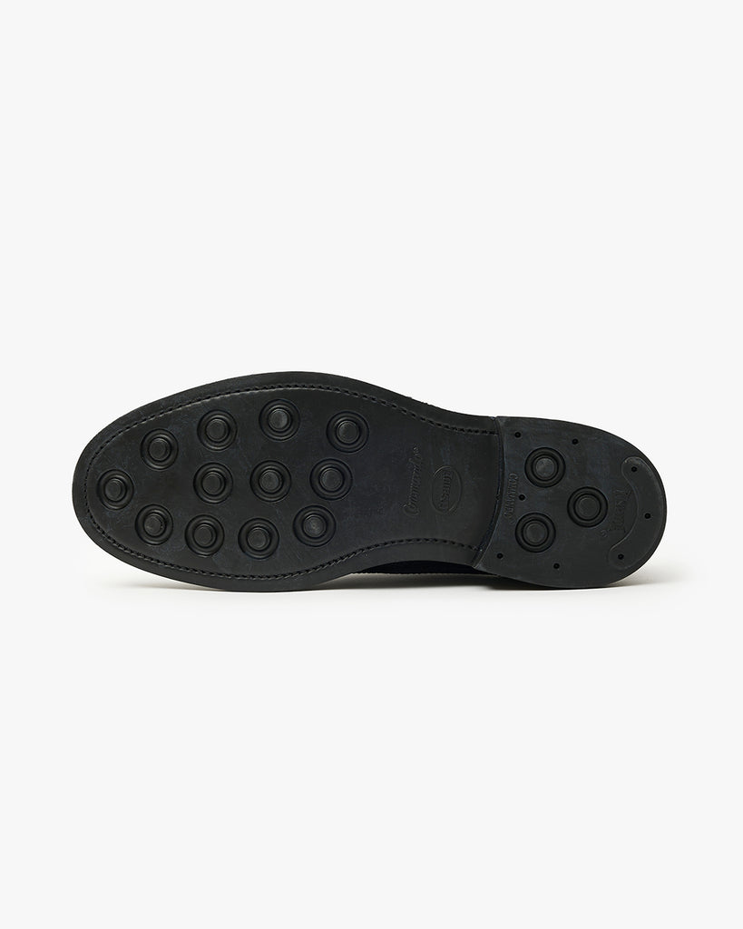 アッパーは、キズが目立ちにくいBLACK GRAIN LEATHERを採用。ダブルソール仕様で堅牢性があり、スプリットウェルトが靴に適度なボリューム感を与えてくれます。