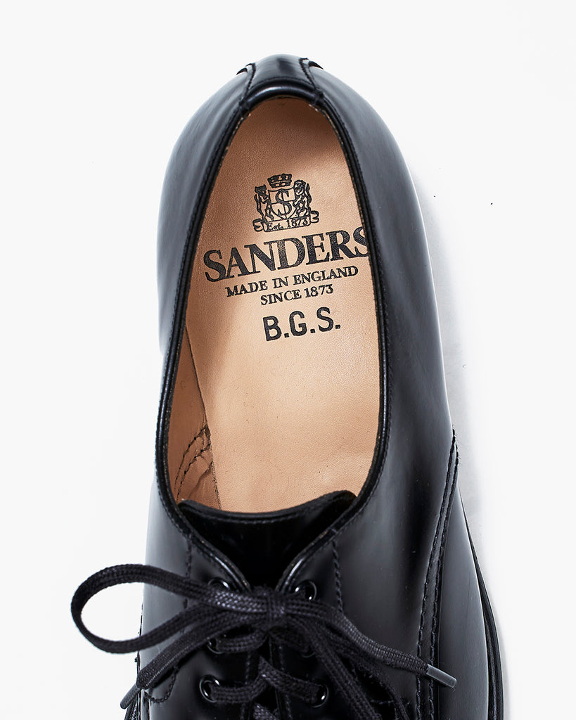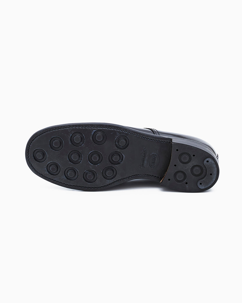 アッパーはポリッシュドレザー仕様。光沢感があり傷や汚れが付きにくく、比較的雨にも強いのが特徴です。ブラッシングの後、少量の水を含ませた柔らかい布で磨いて頂くと光沢感が保てます。簡単にお手入れができるため、革靴を初めて履く方へもおすすめです。